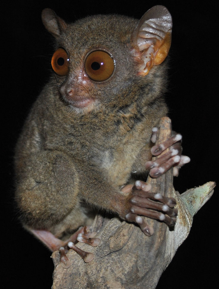 The Philippine Tarsier (Tarsius syrichta or Carlito syrichta), known locally as the Kupal in Cebuano/Visayan and Mamag in Luzon, is an endangered species of tarsier endemic to the Philippines. It is found in the southeastern part of the archipelago, particularly in the islands of Bohol, Samar, Leyte and Mindanao. It is a member of the approximately 45 million year old family Tarsiidae,whose name is derived from its elongated “tarsus” or ankle bone.