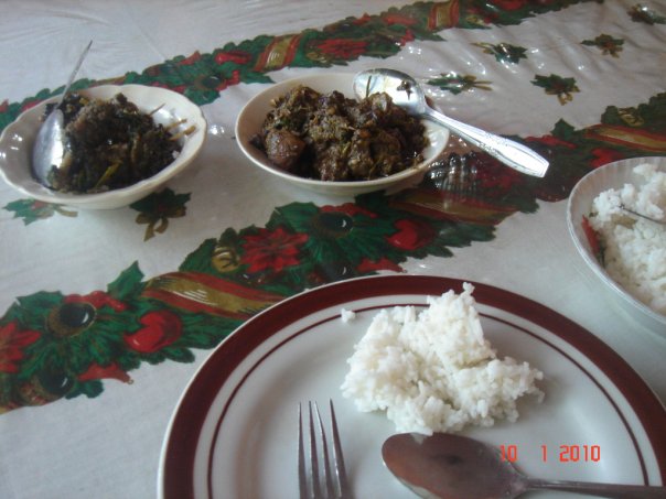 Father wanted to know how he had managed to get dog meat. It seemed that the two fat puppies I had seen only the week before in his compound had BOTH run across the road AT THE SAME TIME. A car had knocked them down, killing them instantaneously. How unfortunate for the puppies! How fortuitous for a dog meat lover like him!