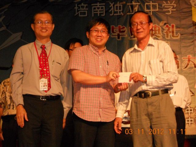 Dragon-i (Aeon branch) chief executive officer Henry Yip handed the money to SMJK Poi Lam Board of Governors chairman Steven Yow and Poi Lam High School (Suwa) deputy chairman Lam Sang.