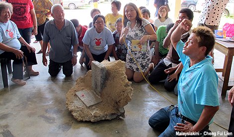 Earlier, Chua (right in pic) was spotted holding an urn with a burning joss stick while walking, which he claimed symbolised the will of Pengerang ancestors to protect the cemetery.
