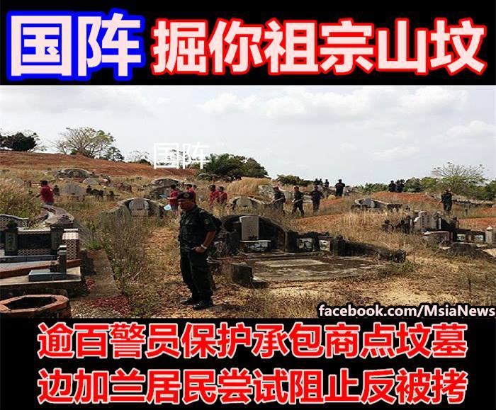 According to Coalition of Pengerang NGOs vice-chairperson Sim Seng San, the residents rushed to the cemetery after receiving word that five workers were counting the graves while being protected by some police officers at around 9am.
