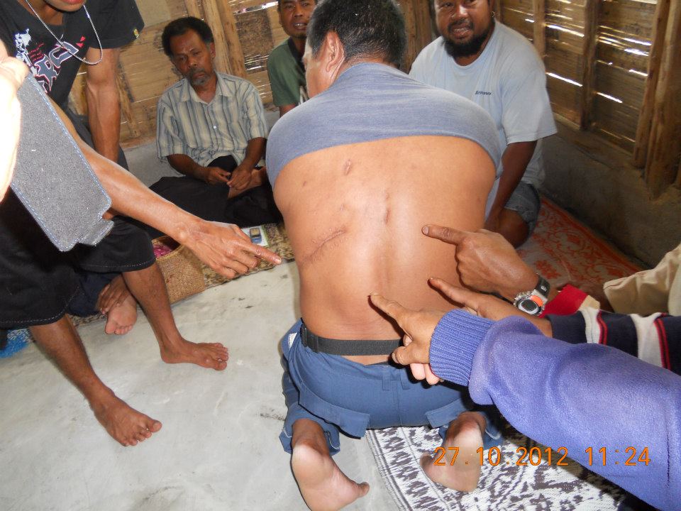 When his wife saw him bedraggled and bleeding, she sought the help of a worker from a nearby oil palm estate to take him to a clinic.