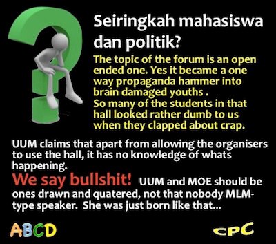That was the often drawn conclusion of Internet users after watching a video of a forum for Universiti Utara Malaysia students which took place last month.