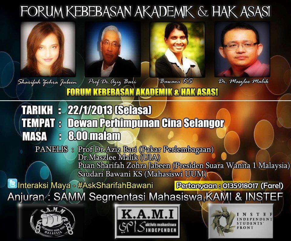 Sharifah Zohra, dubbed the “Listen” woman after her outburst, was also alleged to have been invited to share the same stage by the organiser, student group Solidariti Anak Muda Malaysia (SAMM), but her organisation, Suara Wanita 1 Malaysia (SW1M), yesterday confirmed Sharifah Zohra will not be attending the “Academic Freedom and Fundamental Rights” forum.