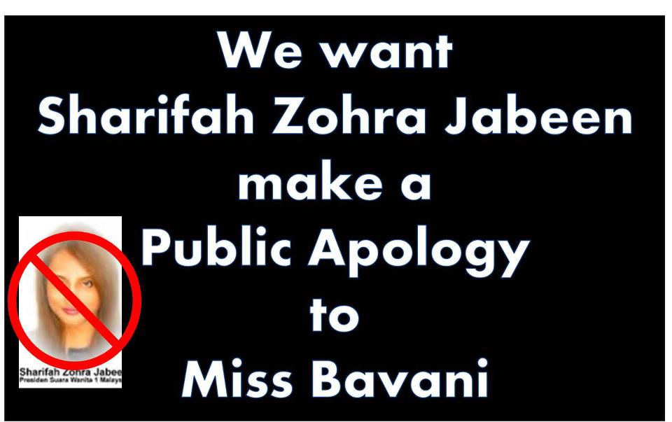 A Facebook fanpage themed “We want Sharifah Zohra Jabeen make a public apology to Miss Bavani” has at press time drawn more than 21,000 likes only after 17 hours of