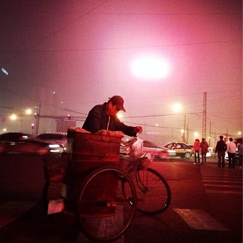 Photo: Angry red sky. Red light from a big screen diffused through pollutants in the air in downtown… http://tmblr.co/Zu5uYxwmX1T3