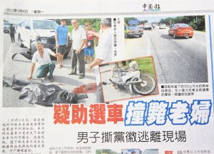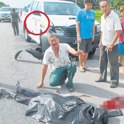 AN OPEN LETTER TO THE PM FOR JUSTICEAt 9.36 am 03.03.2013, an idiot was driving an unstable Hilux at very high speed, lost control and killed my mother. Unfortunately for us, he was an Umno idiot. He did not even pause to check if my mother’s life could be saved. He got out and ran 100 meters, picked up by another vehicle and disappeared from the scene. He later claimed there were tattooed men. His two passengers were not fearful of imaginary tattooed men. They were photographed by the China Press bravely tearing off BN stickers from the Hilux windows.