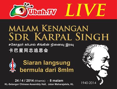 LIVE on ubah.tv from Dewan Sri Pinang: Karpal Singh state honours funeral 8am-11am, 20 April 2014. Sebarkan! pic.twitter.com/JvbmJlHtLj