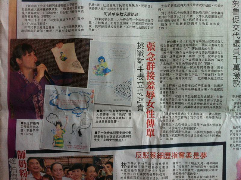 They are all printed in Mandarin and the target of attack is obviously the DAP candidate, Teo Nie Ching, who gave birth to a girl last year.