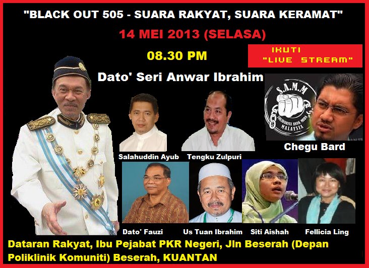 PENTING !! PERTUKARAN LOKASI “BLACK OUT 505 – SUARA RAKYAT SUARA KERAMAT” MLM INI DI KUANTAN.