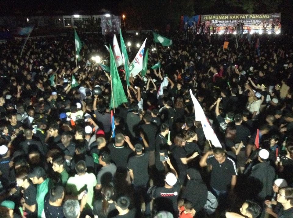 BESERAH, KUANTAN – Undeterred by a last-minute change in venue, more than 60,000 people made a beeline for Anwar Ibrahim’s 505 Blackout rally to protest an electoral victory his Pakatan Rakyat coalition claims was stolen from them by Prime Minister Najib Razak’s Umno-BN government.