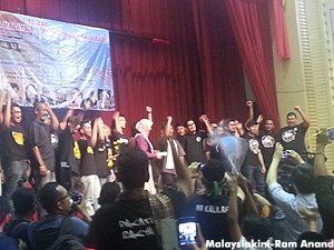 “We had planned this for May 18, but there were objections from some sections of our supporters who felt (there was not enough time) to mobilise (people),” Chegubard told Malaysiakini.Blogger Hishamuddin Rais (right), also a speaker at last night’s session, said the time has come for the people to keep the ‘promise’ that they would go to the streets if there was fraud during the 13th general election.”The (electoral) system has been created for Umno. They will do anything for a win. It is only your thickness that makes you think that Umno can be removed from government through elections.“This is not a threat. It’s a promise,” Hishamuddin said to a rapturous applause from the crowd of 1,000 people.”Arrange a massive movement. If someone asks me to produce evidence about electoral fraud, I would say he is stupid. I have been writing about this for donkey’s years.”Hishamuddin’s thoughts were echoed by ABU leader Haris Ibrahim, who also said the rakyat should act and not just wait another five years for another opportunity to change the government.‘1 million people’ street rally planned for KL