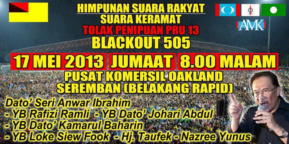 50,000 hadiri Perhimpunan Blackout 505 di Seremban @anwaribrahim @niknazmi @tianchua @anthonyloke @elizabethwong pic.twitter.com/OUDhUflNlx