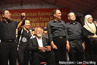 Despite police warning that the rally was illegal, thousands turned up for a Pakatan Rakyat state government sponsored ‘thanksgiving’ event at the Esplanade in Penang last night.