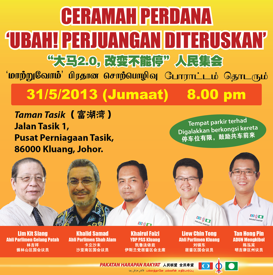 Berucap di Ceramah Perdana’Ubah! Perjuangan Diteruskan’di Kluang bersama YB Lim Kit Siang.Ribuan warga kluang hadir pic.twitter.com/O9WBA67JX7