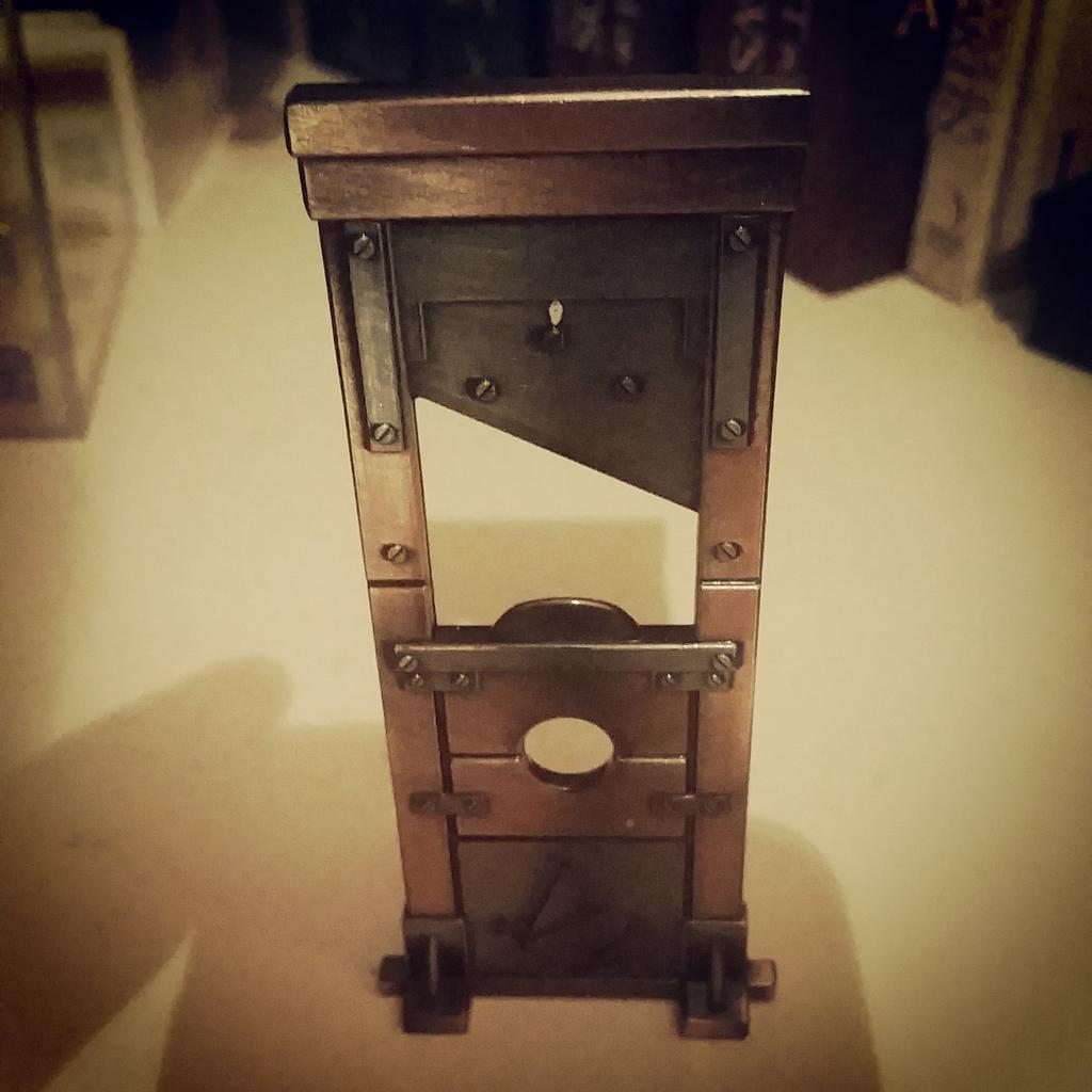 Historic replicas (1:6 scale) of the two main types of French guillotines: Model 1792, left, and Model 1872 (state as of 1907), right