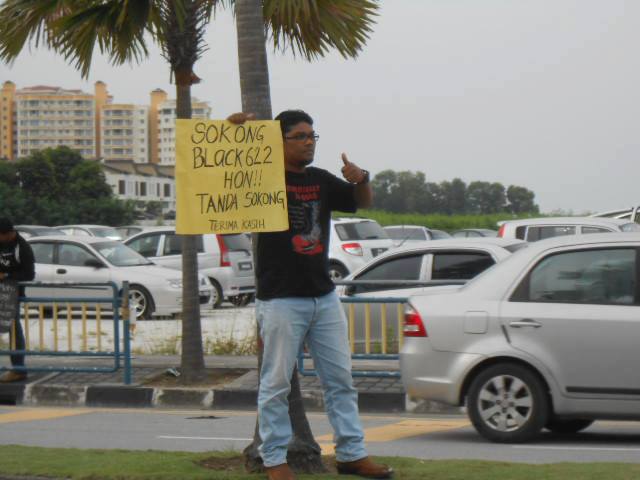 They stood in front of the popular shopping centre at Jalan Tuanku Abdul Rahman for about 30 minutes holding placards reading ‘EC chairman step down’ and ‘Come join the June 22 Blackout’.