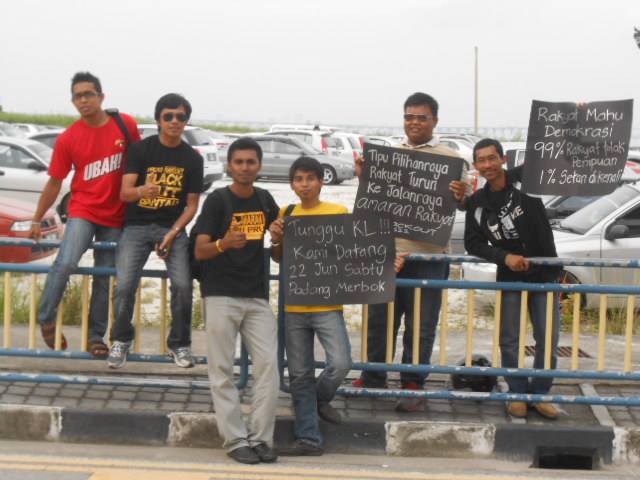 They also chanted slogans such as hidup rakyat’ and undur SPR’ while holding up placards and distributing fliers about the Black 505 rally on June 22. As they were about to be arrested, the participants shouted Hidup Rakyat before being whisked away in the Black Maria.