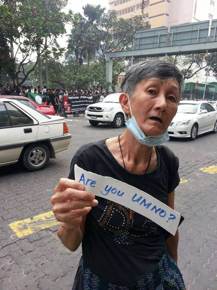 KUALA LUMPUR: While politicians delivered fiery speeches at Padang Merbok, one elderly man decided to show his frustration by beating Prime Minister Najib Tun Razak’s portrait with a slipper.