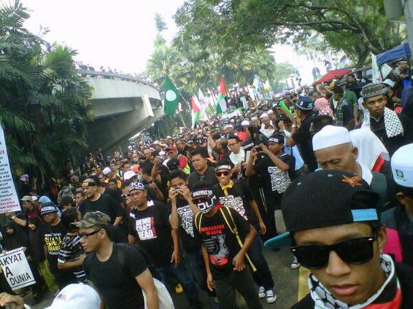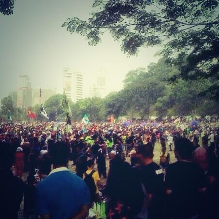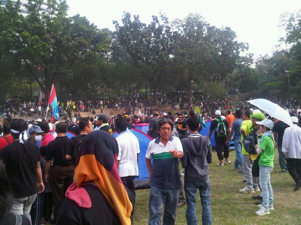 3.09pm: Crowd from Brickfields, PAS headquarters and Sogo have reached Dataran Merdeka. Crowd from University Malaya yet to arrive.