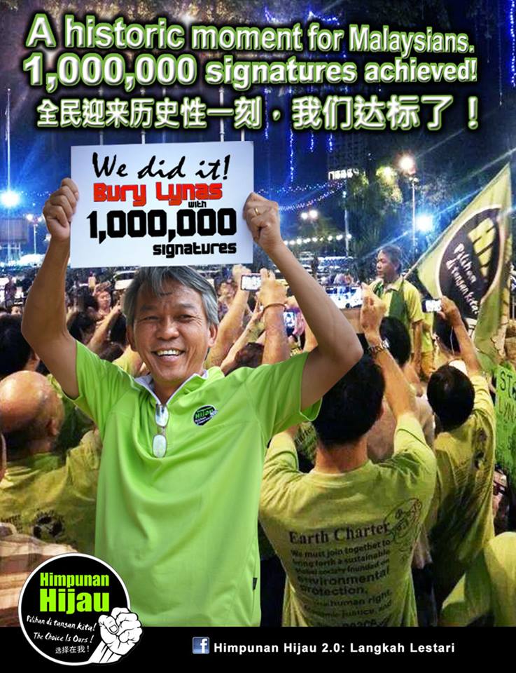 1 million signatures targeted by Himpunan Hijau to voice against Lynas’ plant.