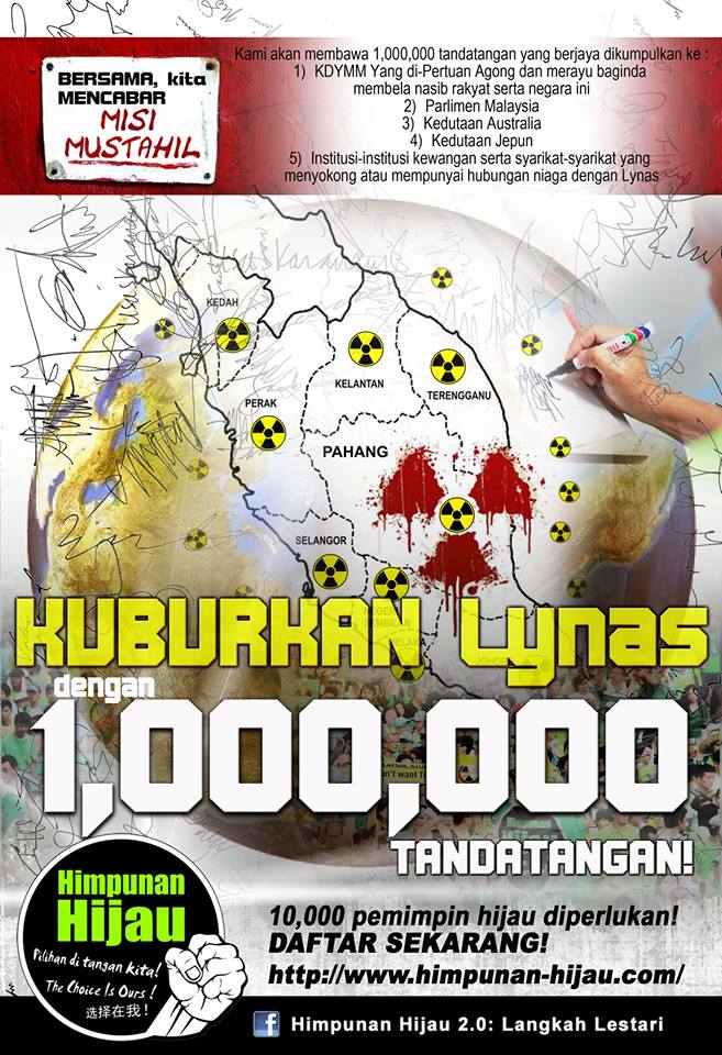 Himpunan Hijau aims by to collect a million signatures to stop the controversial Australian Lynas rare earth refinery plant.