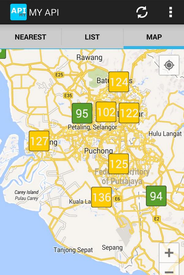 Areas that recorded moderate API readings were Malacca (88), Port Klang, (91) and Port Dickson in Negri Sembilan (79).