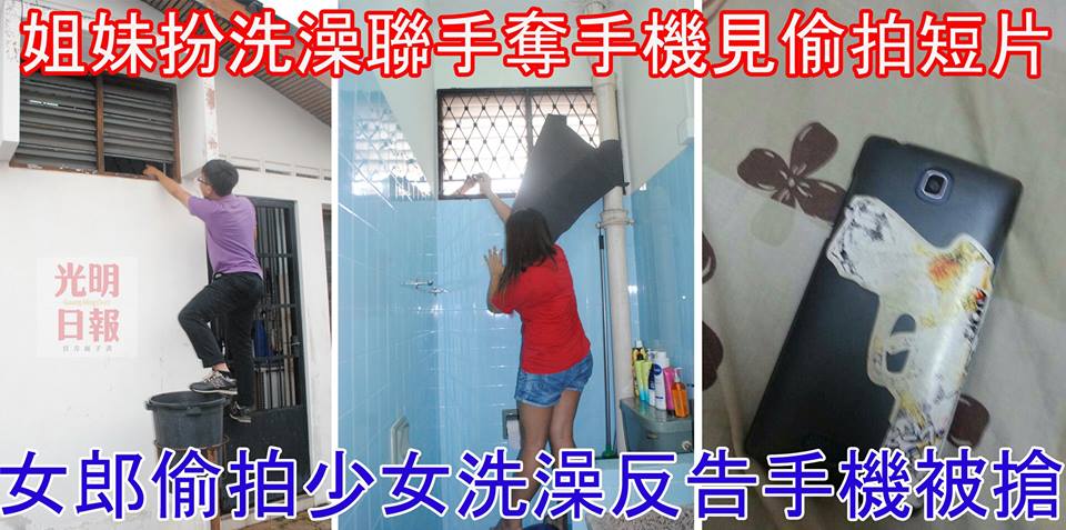 Stomper Jackie caught this man peeping at him using a mirror from an adjacent cubicle at the public toilet near the ticketing area at Harbourfront. Jackie had been alerted to the man when the mirror reflected light from a ceiling light onto his face. He said, “I looked down and saw a mirror on the floor of the toilet on a piece of toilet paper.” During a phone conversation with Stomp, Jackie explained that he had hurriedly gotten dressed and shouted at the man to get out of the cubicle. The man, however, refused to open the door of the cubicle. Eventually after about ten minutes, Jackie was forced to leave the toilet, as he had a ferry to catch. http://singaporeseen.stomp.com.sg/singaporeseen/this-urban-jungle/toilet-user-shocked-by-man-who-used-mirror-to-peek-at-him-from-adjacent-cubicle —– *I ONCE SAW A MAN TRYING TO STEAL FRILLY UNDERWEAR FROM MY NEIGHBOUR’S BACKYARD! I saw a man trying to steal underwear with a hook on a pole; at my back lane. It was at about 12.30pm. Yes, IN BROAD DAYLIGHT! I tricked him into a conversation, and then got him to show me his IC. I saw the name in his IC and also saw the licence plate on his motorbike. I gave all the info to police. They traced him to an abandoned house nearby, where he stayed. He was arrested, and turned out to LOVE dressing in women’s underwear in his bedroom where he had about 2000 pieces! — Wait for 8-10 seconds for the video to appear. https://www.facebook.com/photo.php?v=678088548912815&set=vb.395518280503178&type=2&theater