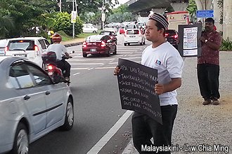 After she left, the group from Geng Kotak, Solidariti Anak Muda Malaysia (SAMM) and Life for Democracy – resumed with their protest, urging passing motorists to honk in support.