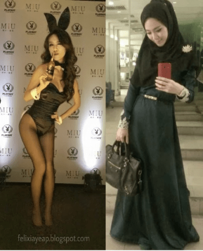 First Malaysian Playboy bunny and model Felixia Yeap’s decision to don the hijab (Muslim headgear) despite being a non-Muslim has shocked many, with some fans berating her and labelling it as a “publicity stunt”.