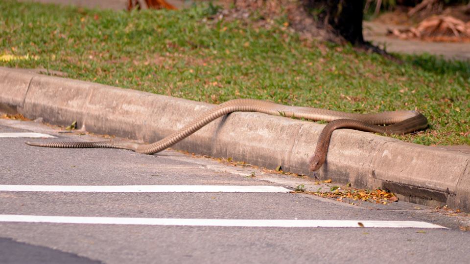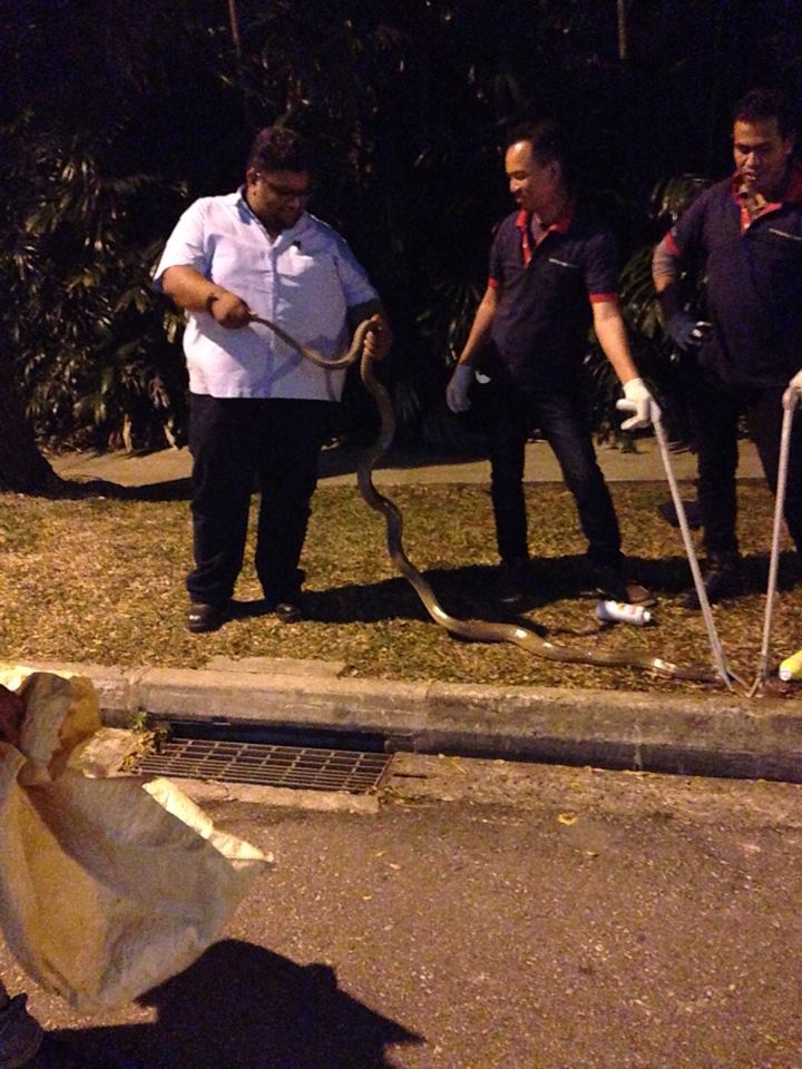 Students at NTU were stunned to see a king cobra and a reticulated python fighting on the grounds of the university on Thursday, Aug 27, 2015. PHOTO: ABHISHEK AMBEDESINGAPORE – Students and staff at the Nanyang Technological University (NTU) were stunned by the rare sight of two snakes locked in battle on a road at the school on Thursday afternoon.