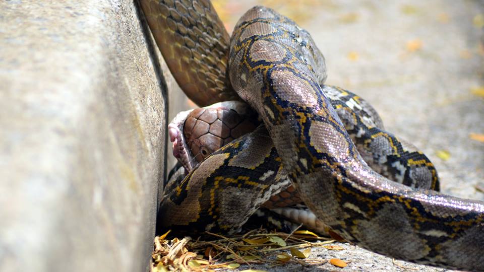 Python versus king cobra in a battle at NTU campus