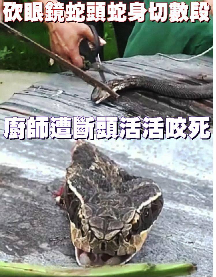 A chef preparing a dish from cobra flesh died when the snake’s head bit him – 20 minutes AFTER it was cut off.