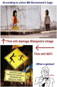 Two local councillors say if MBJB was to blame the Lego mural for tarnishing the city’s image, then it must also remove the many signs that say, “beware of pickpocket”.