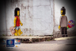 Zacharevic’s Lego characters are seen plastered on walls at several locations in Johor Baru