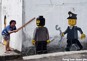 http://asiancorrespondent.com/115795/crime-themed-lego-mural-causes-a-storm-in-johor-bahru/