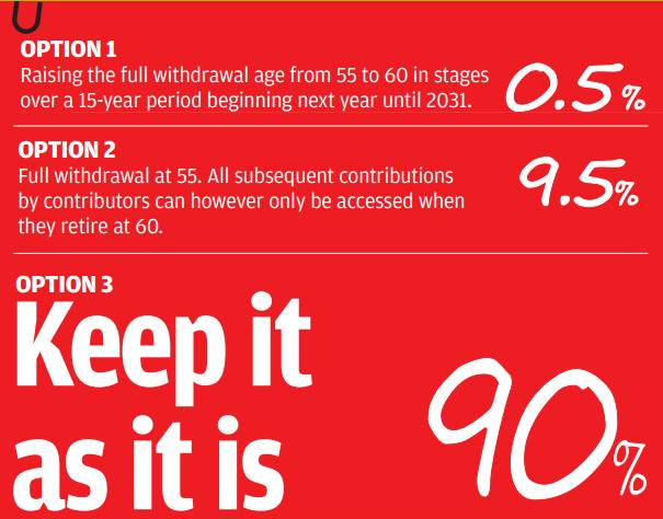 Other enhancement will be done is the flexible withdrawal policy which allows members to withdraw any amount at any time for partial withdrawals, has been extended up to age 100 from current age cap of 75 years old.