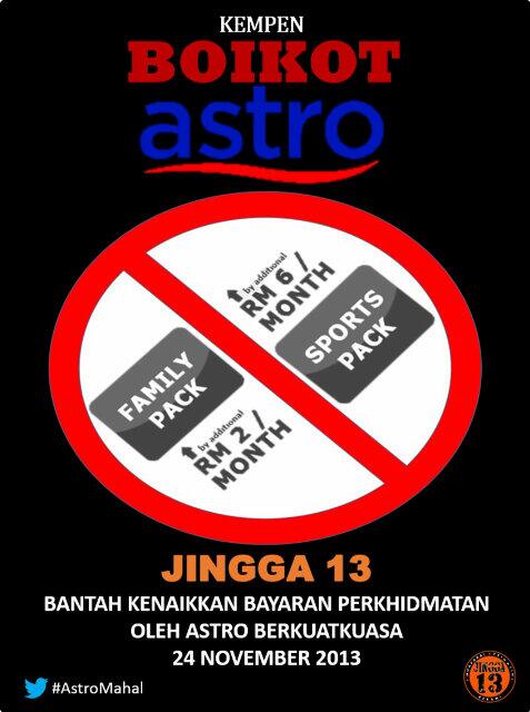 Jingga 13 Malaysia warns Astro that they will organise a nationwide boycott if the company proceeds with price increases.