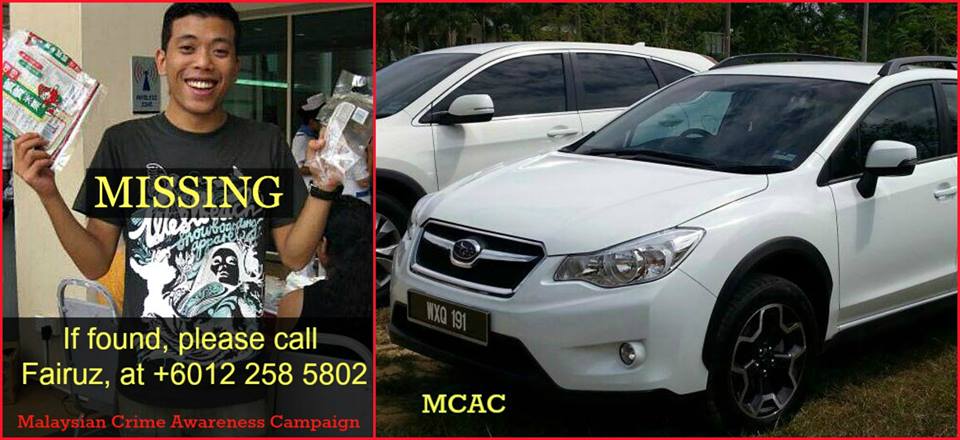 Iskandar Zulkarnain and a white Subaru XV (WXQ 191) are missing!