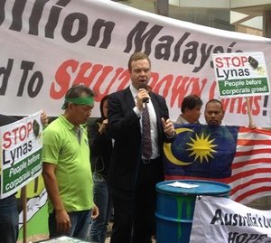 NSW Greens Party MP Jamie Parker, a stalwart supporter of the anti-Lynas campaign, reminded the crowd outside the AGM that “the only reason Lynas is operating in Malaysia is because of the democratic deficit there”.