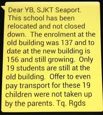 PETALING JAYA (Jan 15, 2014): Sekolah Jenis Kebangsaan (Tamil) Seaport has been relocated and not closed, the Education Ministry stated today.