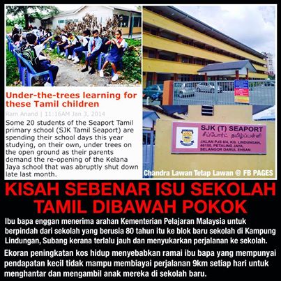 He was responding to the news on several portals that 23 pupils of SJKT Seaport were attending classes under a tree on vacant land after the school was closed abruptly before the 2014 school session began.