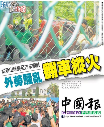 NST: Myanmar foreign workers burned a car and damaged a factory in a riot at Desa Perindustrian Kulai, Kelapa Sawit, Kulaijaya in Johor Baru