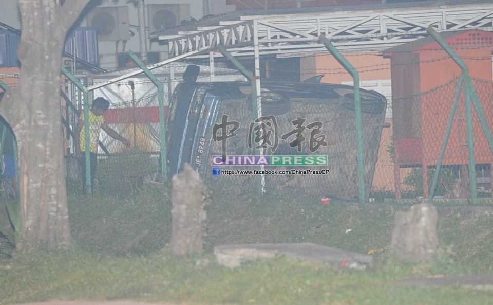 In the incident, the factory’s front facade was damaged, while a Proton Iswara Aeroback was set ablaze and turned upside down.