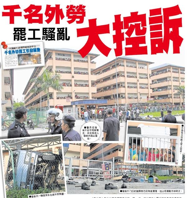 這起外勞騷亂事件于今日傍晚6時許,在新山地不老第四工業區某電腦硬盤廠一外勞宿舍發生;這間外勞宿舍曾于2010年發生騷亂。