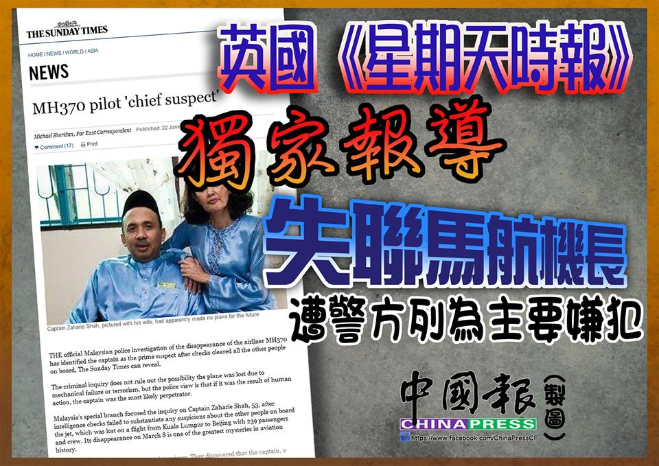 1. The Sunday Times (UK), in its website, the newspaper quoted PDRM as currently regarding Zaharie as the main suspect behind the aircraft’s disappearance.
