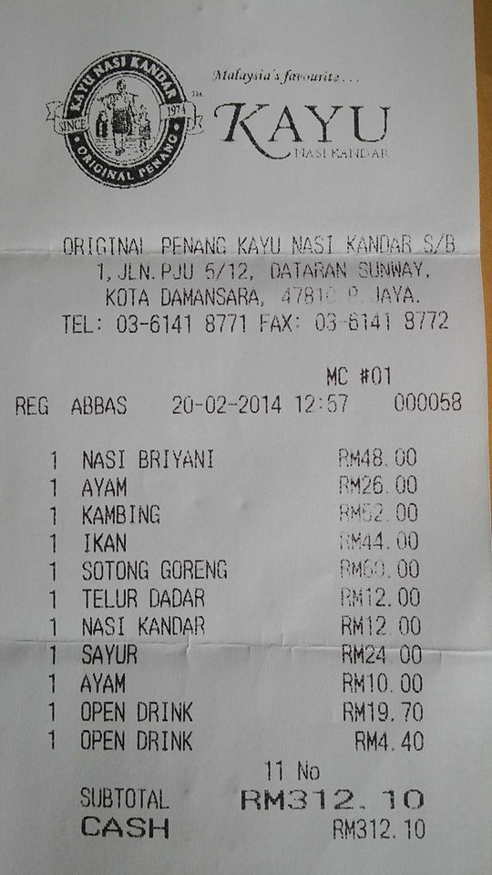 KUALA LUMPUR: A Facebook post claiming Original Kayu Nasi Kandar restaurant overcharged its customers is being shared on social media, but the manager of the restaurant is denying the allegation.
