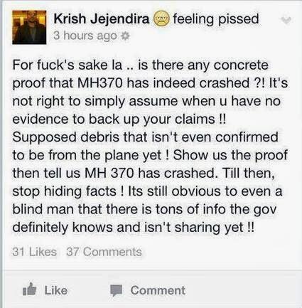 “For f**k’s sake lah… Is there any concrete proof that MH370 has indeed crashed?! It’s not right to simply assume when you have no evidence to back up your claims!