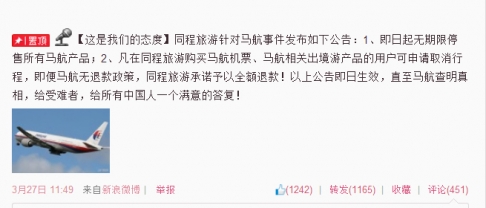 “(There is a) specific directive to our crew on public comments on MH370. (There is a) duty of care not to be hurtful,” he wrote in response to Fernandes’ tweet.