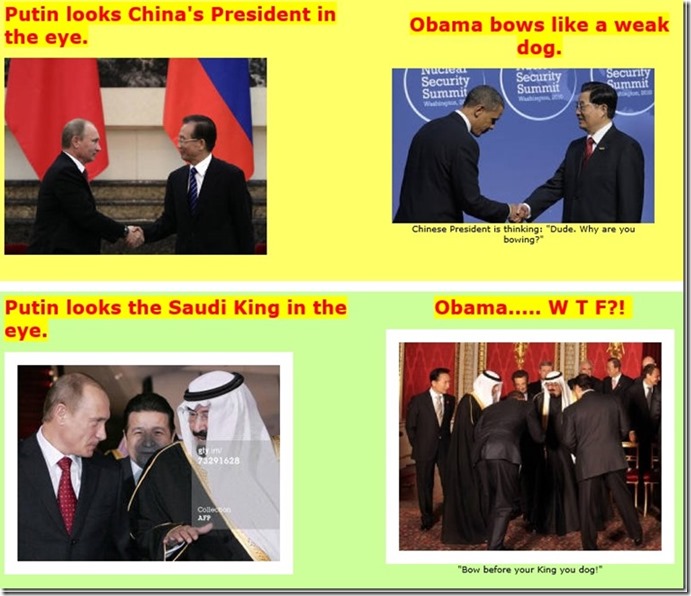 President Obama is the leader of America, the most powerful nation in the world (for now). Putin is the leader of Russia, which lost the USSR but isn’t exactly a weak nation.